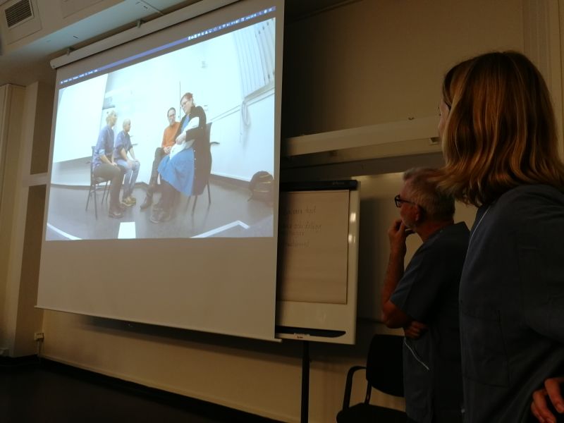 De viktiga samtalen – oavsett om de sker digitalt eller fysiskt i samma rum – måste vi träna för att bli bättre på. Det är i övningen vi upptäcker våra utmaningar och våra styrkor. Med hjälp av reflektion och återkoppling kan vi upptäcka och stärka det som fungerar och finna nya beteenden och strategier när något fungerar mindre bra. Här bild från årets nationella CEPS-möte (koncept för patientsimulering i Sverige) på Södersjukhuset i Stockholm i oktober, då Camilla Rönngren och Fredrik Mattsson gav en minikurs i det svåra samtalet inför vårdpersonal från hela landet. Nedan en länk där du kan läsa mer om hur vi kan jobba med kommunikationsträning.