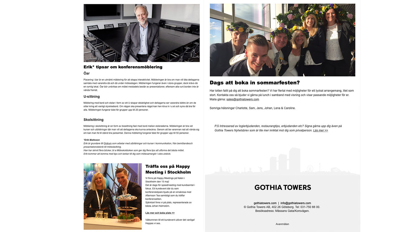 Ordrum inleder ett samarbete med Gothia Towers vilket bl.a. innebär att Erik Mattsson kommer att ge mötestips i Gothia Towers nyhetsbrev. Här hittar du hela nyhetsbrevet.