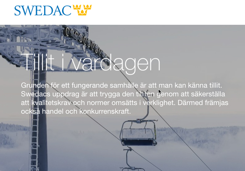 Swedac är myndigheten med uppdrag att skapa tillit i samhället. De gör detta genom att ackreditera och kontrollera. De ackrediterar allt från den som kontrollerar hissar till dem som kontrollerar kärnkraftverk. Det är också Swedac som ser till att 10 liter i bensinpumpen verkligen är 10 liter.