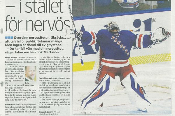 En artikel om Talarkokboken finns i tidningen ”Ny Teknik” den 12 februari: ”Ingen är dömd till evig tystnad – Du kan bli vän med din nervositet, säger talarcoachen Erik Mattsson”.