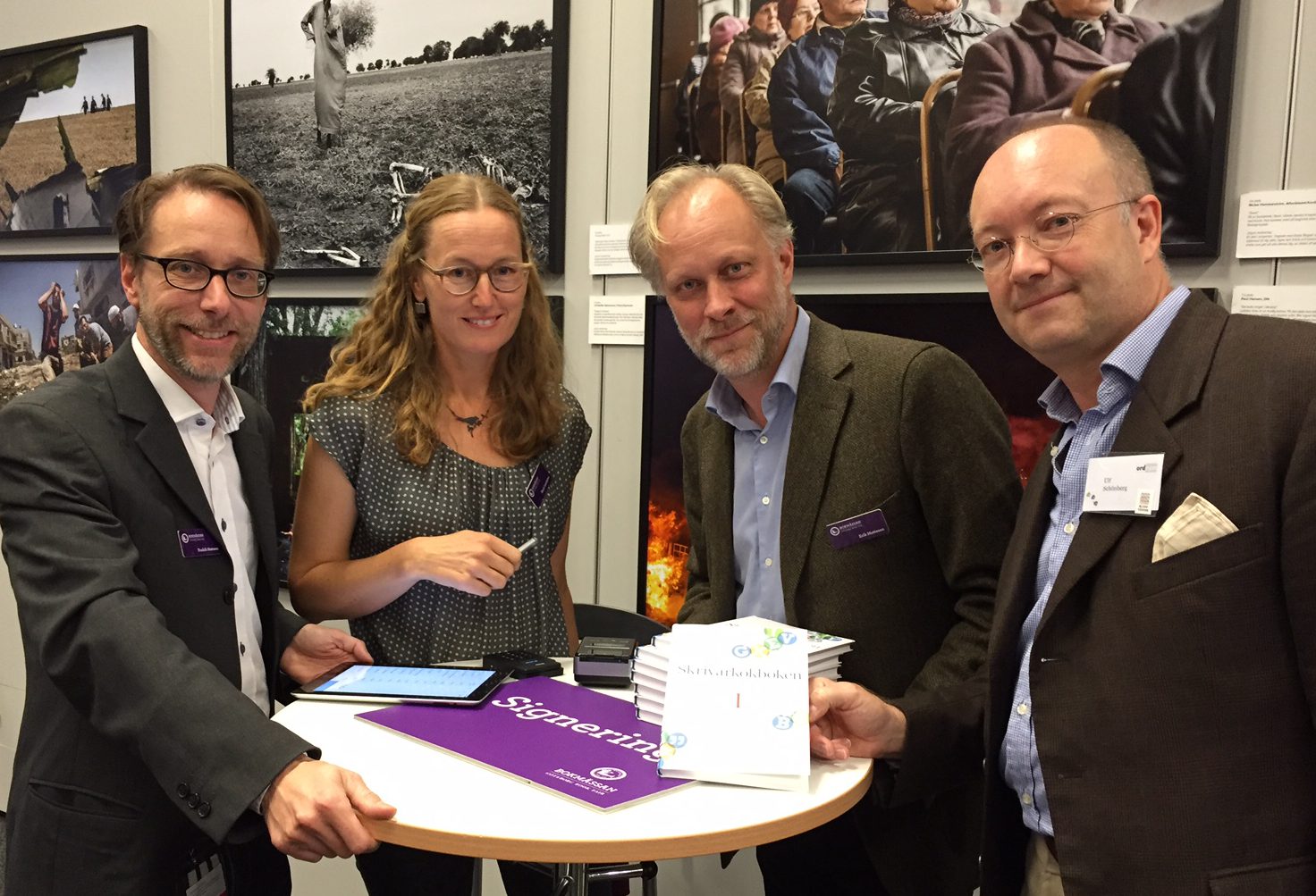 Lanseringen av vår nya bok Skrivarkokboken inleddes med ett seminarium och signering under Bokmässans sista dag. Alla författarna deltog. På bilden från vänster Fredrik Mattsson, Marit Larsdotter, Erik Mattsson och Ulf Schönberg. Förutom boken ger Ordrum kurser på temat att skriva effektivt i jobbet.
