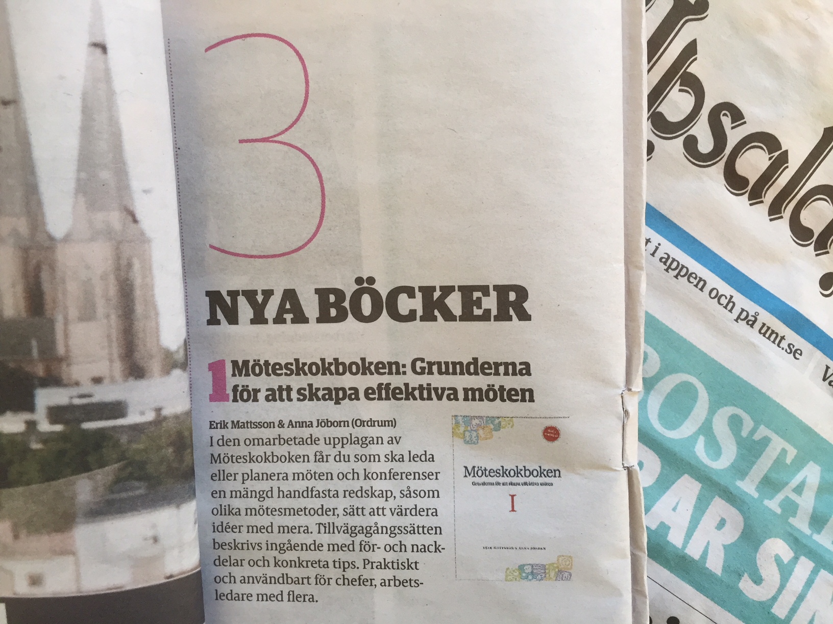 Möteskokboken I, som utkom första gången 2009 har nu kommit i en nyutgåva. Boken, som är skriven av Anna Jöborn och Erik Mattsson, handlar om grunderna för det lyckade mötet och innehåller en lång rad handfasta råd och tips till dig som leder ett möte, såväl det mindre veckomötet, som den större konferensen. ”Praktiskt och användbart för chefer, arbetsledare med flera”, som Upsala Nya Tidning skrev i sin näringslivsbilaga Uppgång nyligen. Finns att titta närmare på i vår webbutik.