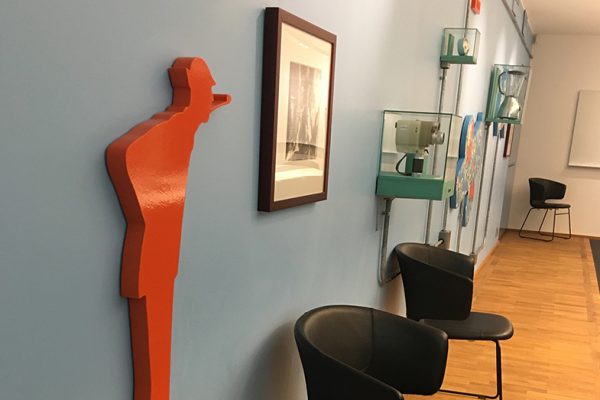 På väggen i konferensrummet sitter en installation skapad av Martin Wickström. Allt börjar med Jacques Tati. En noggrann man som inte lämnade något åt slumpen, sägs det, därför gick det…