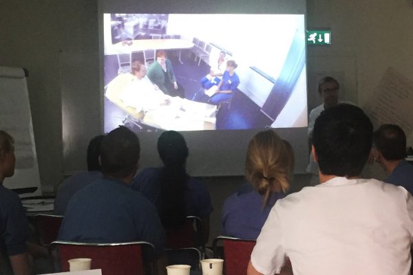 Att öva på det goda samtalet kan göras på flera sätt. På Södersjukhuset såg det senast ut så här när Ordrums Fredrik Mattsson och Camilla Rönngren agerade patient och anhörig under…