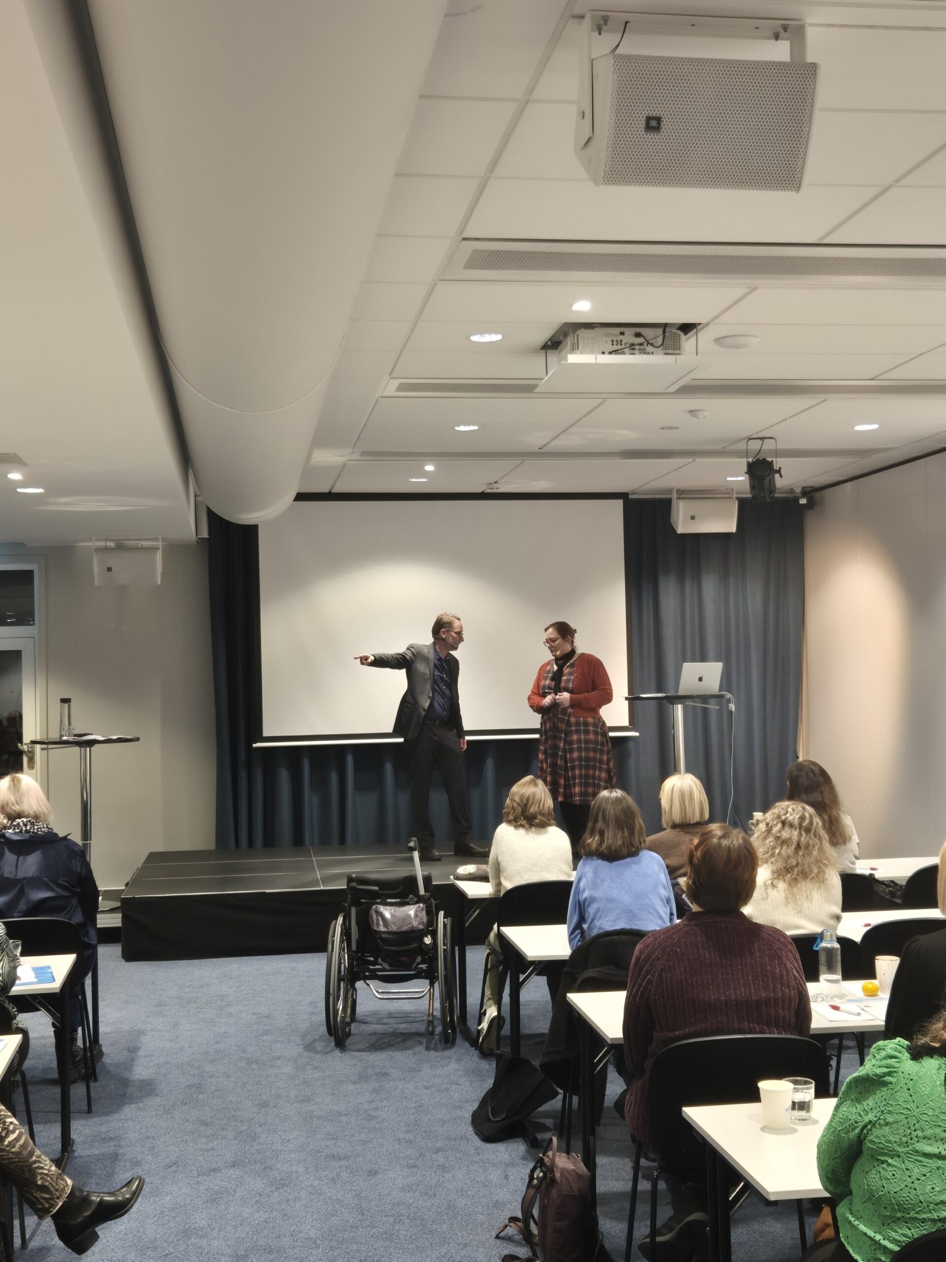 Tack till Kompetensgruppen/Prospector och Vårdforum för höstens samarbete med besök i Malmö, Stockholm och Göteborg. Där har Camilla Rönngren och Fredrik Mattsson föreläst kring kommunikation på våra arbetsplatser, specifikt temat härskartekniker och hur du får till goda samtal. Självklart illustrerade vi det vi talade om med en del spelade scener, som väckte lusten att diskutera och lockade till ett och annat skratt. I vår blir det förhoppningsvis en fortsättning.